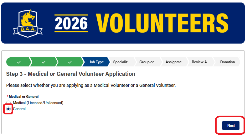 On the next page, select "General" as your volunteer type and click "Next" in the lower right